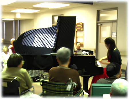 非公開の緩和ケア病棟(ホスピス)と、一般公開の外来ロビーで、合計2回公演しました。