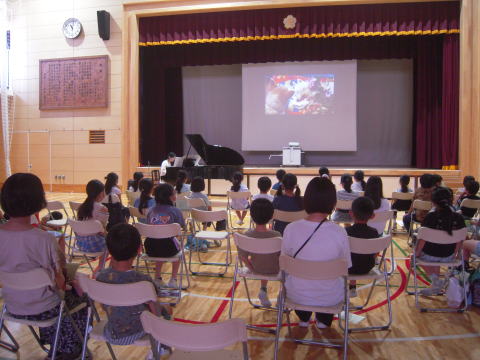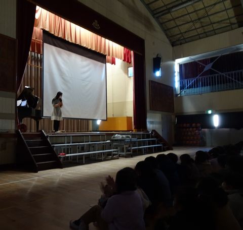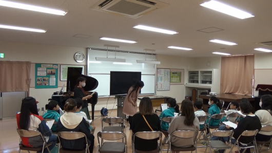 聴いてくれるお子さんたちが全員1年生ということで、1時間集中できるかどうかと、ご依頼のご相談の段階でも先生が少し心配していらっしゃいました。