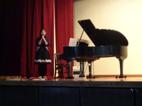 私は地元で一般のお客様を集めて、この音楽室のような小さなスタジオでピアノチャリティコンサートを開き、