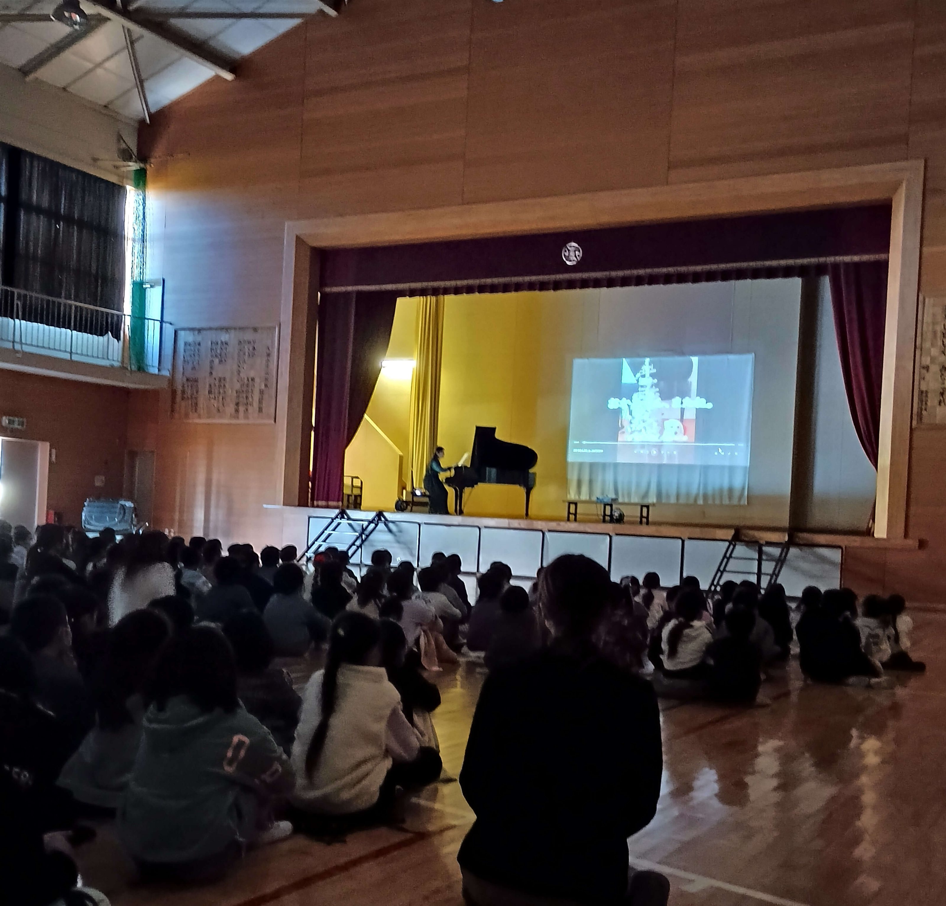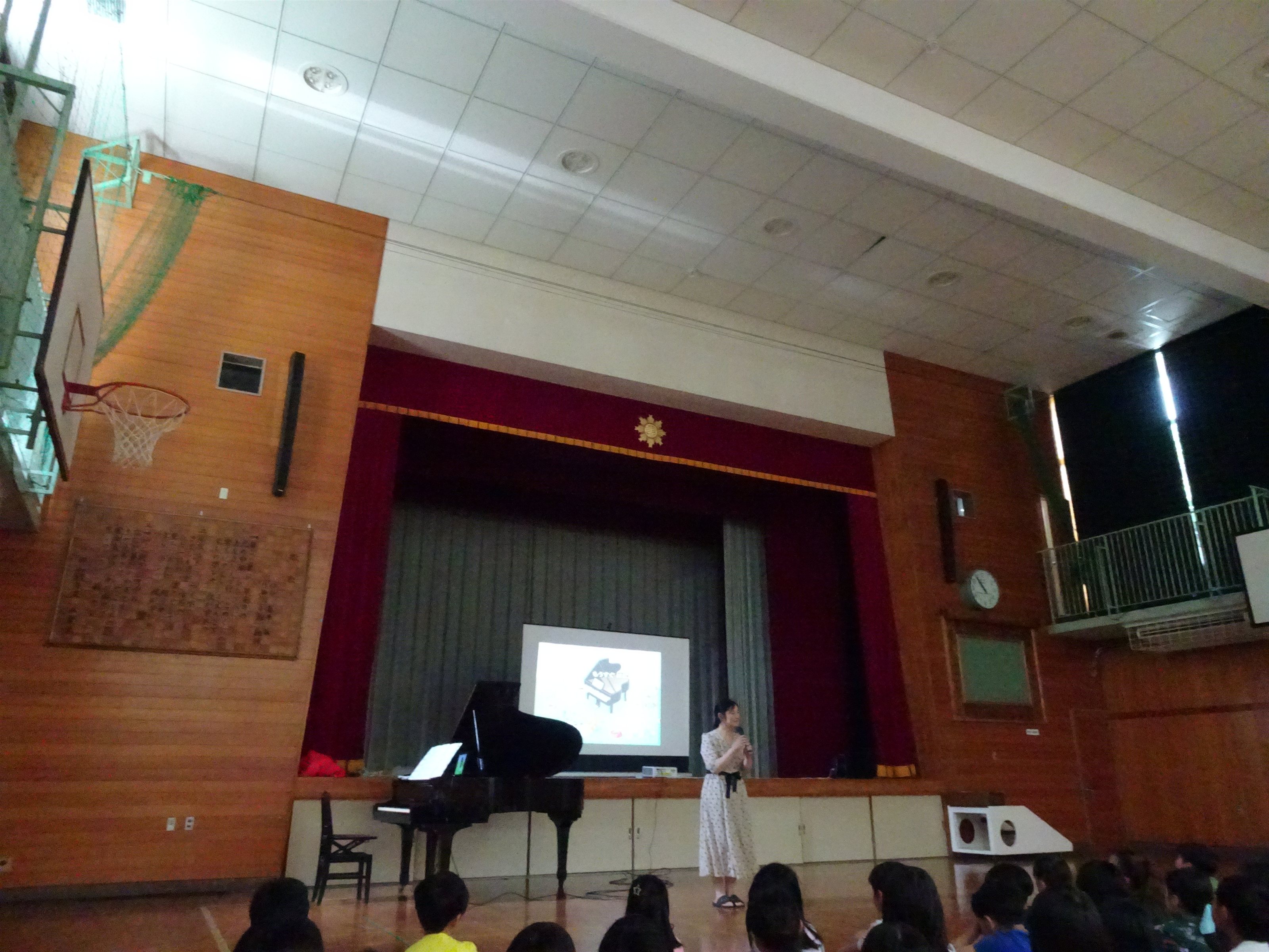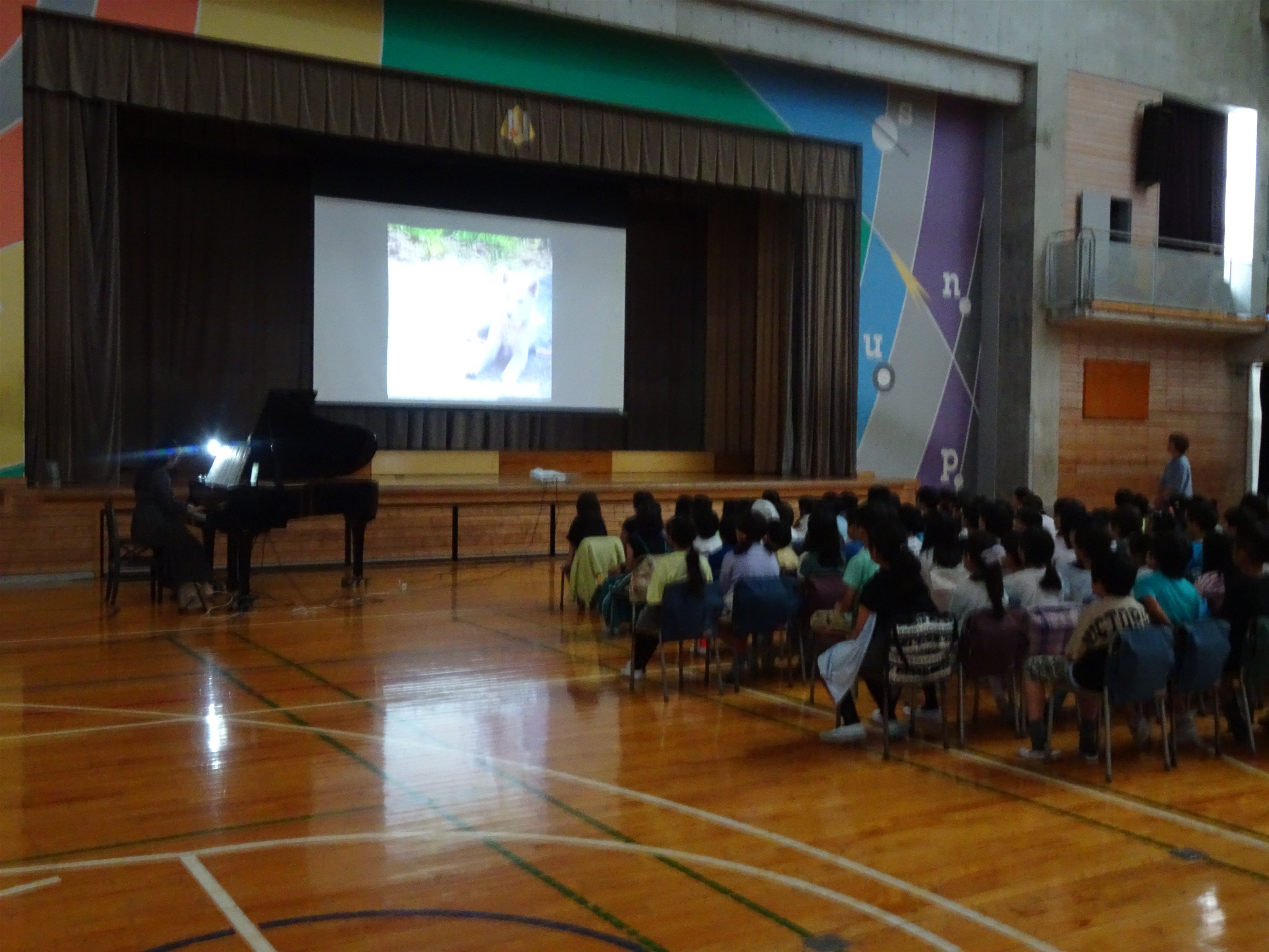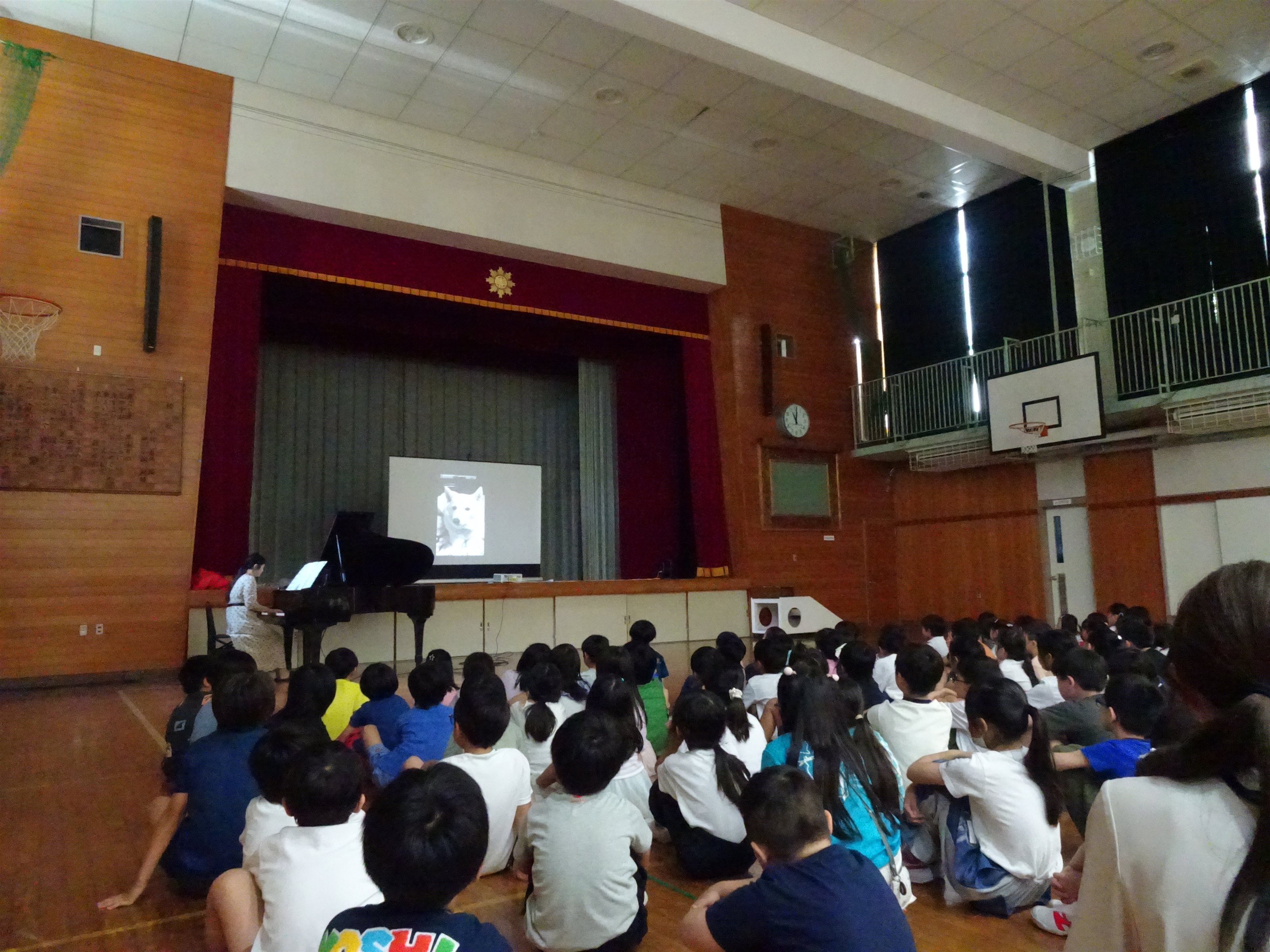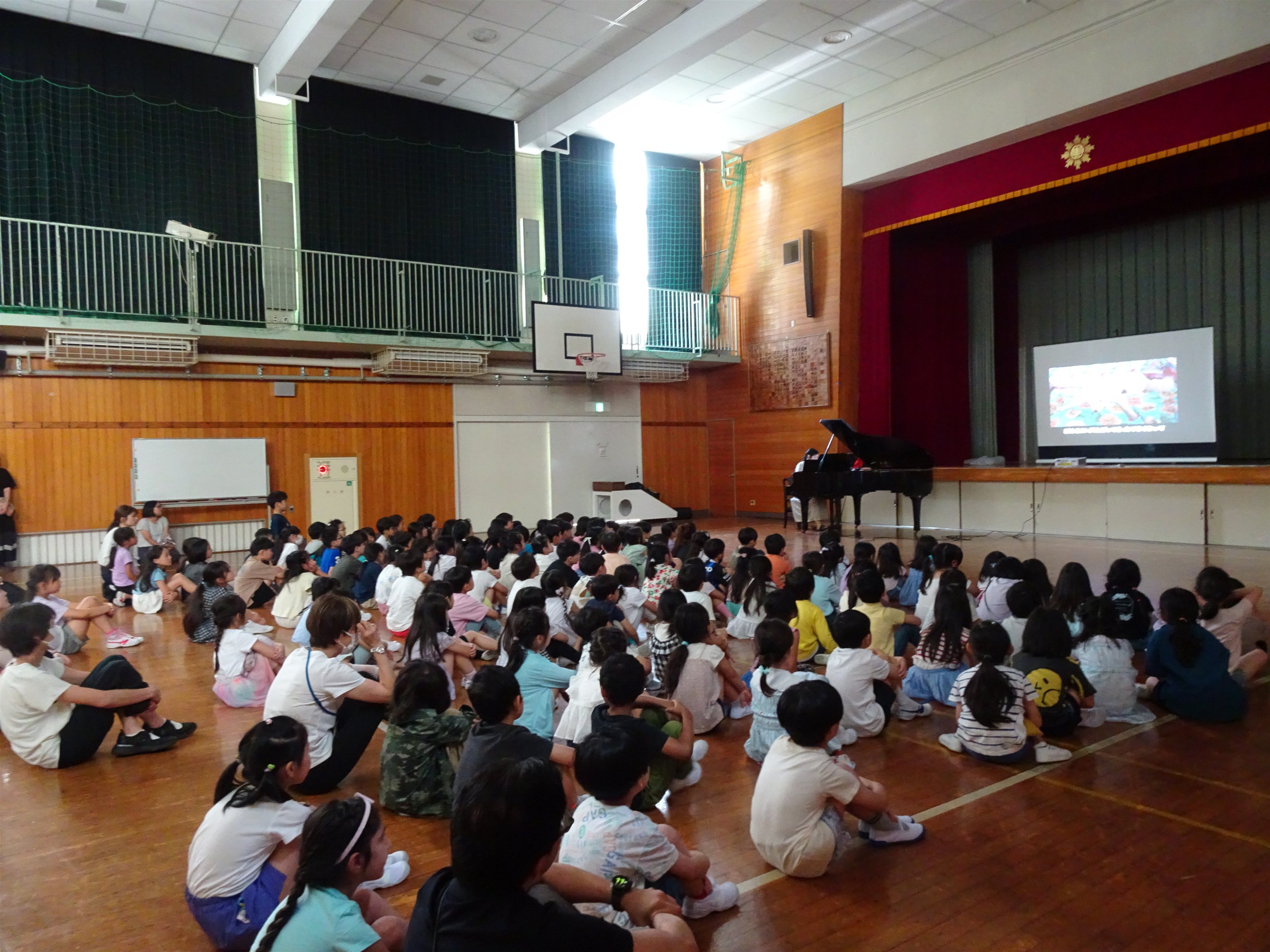 今回は、児童は小学1年生のみという、最年少の小さなお子さんたちだけのコンサートでしたが、こちらの学校のみなさんも最初から最後までいっしょうけんめい聴いてくれました。
