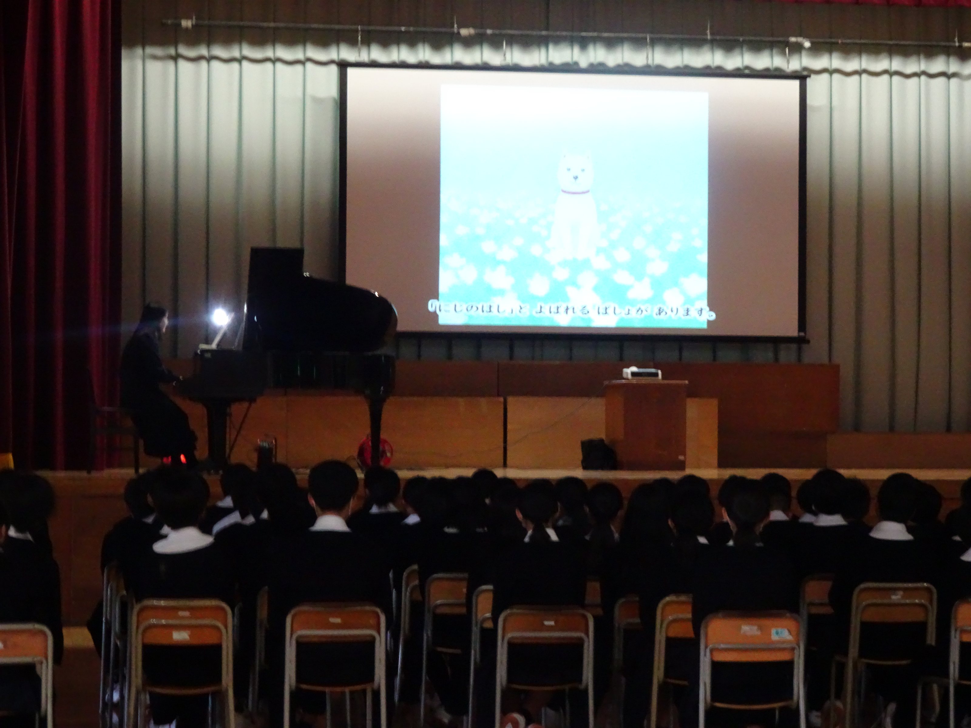 このコンサートの前に、もしできれば、「ある犬のおはなし」(kaiseiさん著)をクラスのみなさんで読んでみてくださいと、事前に先生方にお願いをさせていただいていたのですが、代表の生徒さんたちは事前にその本を読んで感じていたことなどもお話ししてくれました。
